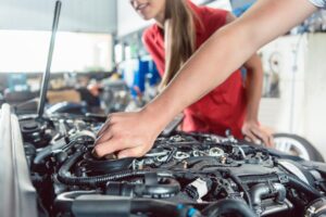 Hand of an auto mechanic checking the car of a customer